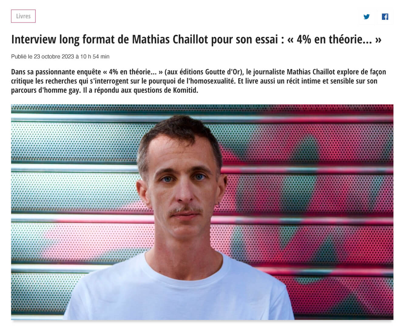 4% en théorie, de Mathias Chaillot, éditions Goutte d’or, 2023, 288 p., 19 €. A commander chez votre libraire de quartier, FNAC, Cultura, etc.