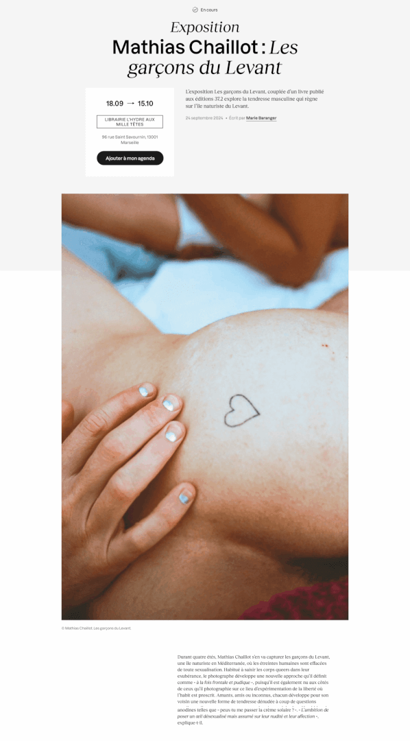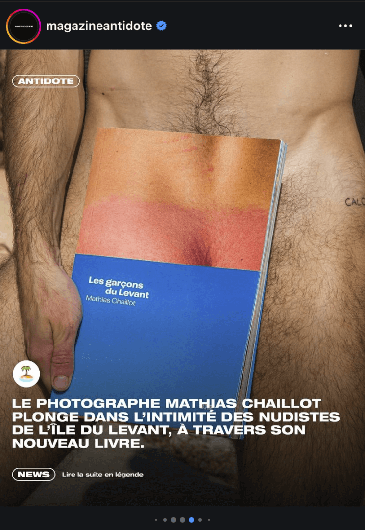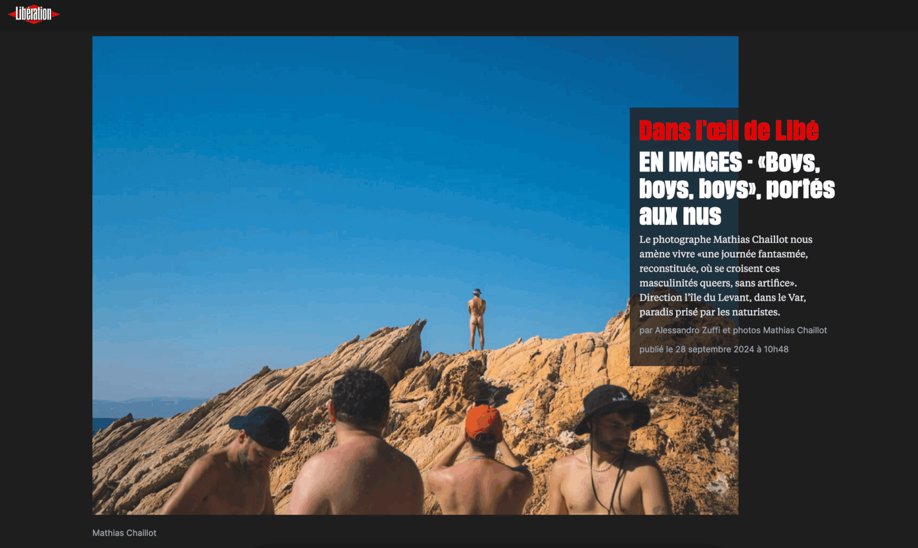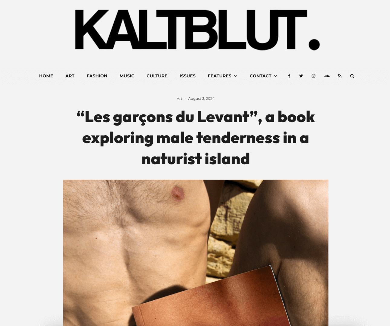 Accompagnés par l’agence graphique We-We, nous avons conçu un nouveau livre qui se vit comme une journée levantine, de la première plage au lever de soleil suivant, à déshabiller sur une centaine d’images. Une promenade conçue durant quatre étés sur cette île naturiste aride et magique de la Méditerranée avec l’ambition de poser un oeil désexualisé, à la fois frontal et pudique, sur cette bande de garçons en liberté.