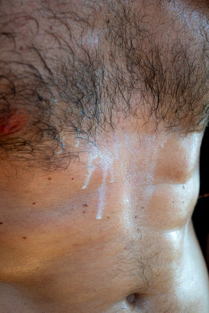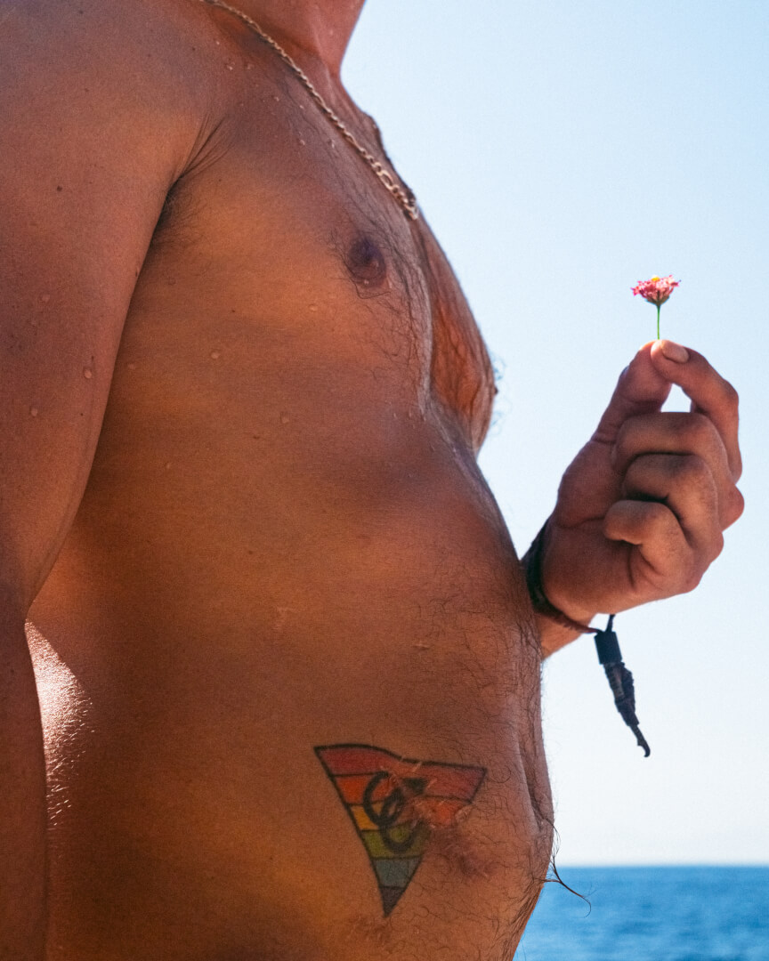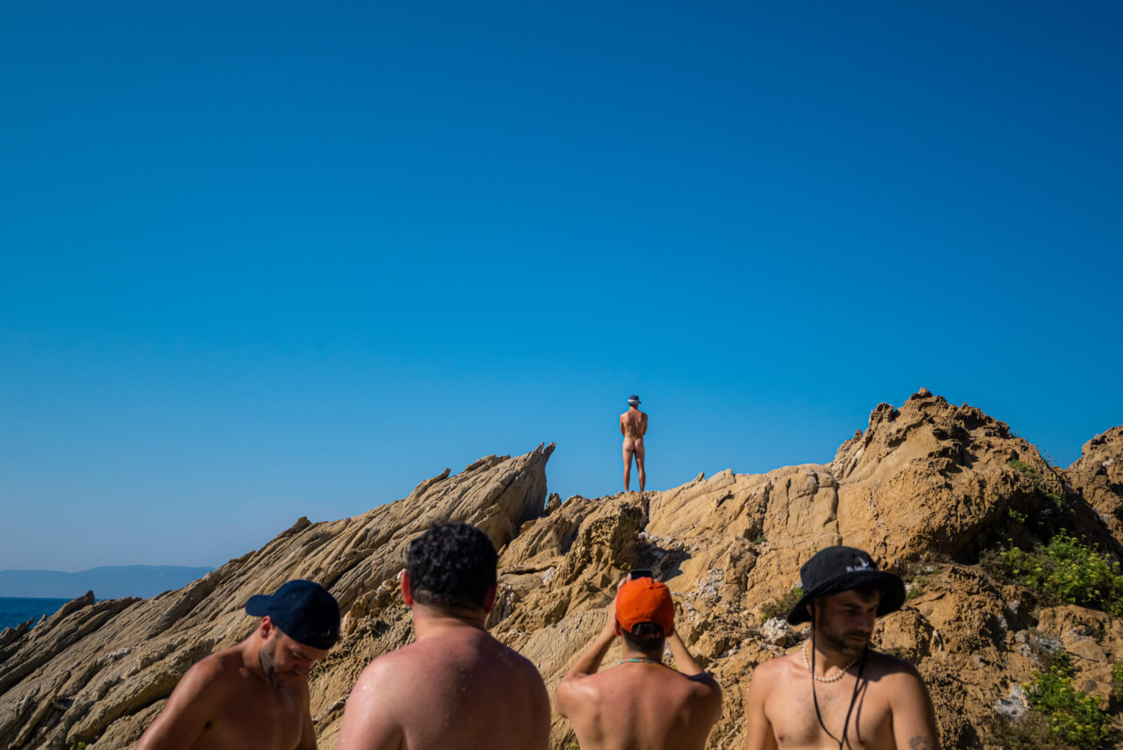 Face à cet abandon désintéressé que seule la nudité totale et partagée permet, je dois trouver un nouvel angle de vue. Oublier les corps queer que j’aime d’habitude photographier dans leur exubérance et leur parasitage du genre pour me rendre à l’évidence, simple, nue, de la sensibilité masculine. Ce regard photographique que je développe au Levant est à l’image des garçons, dans cette contradiction façonnée par l’œil complice et non voyeur que j’essaye de poser sur eux, avec eux, en tant que naturiste à leurs côtés : à la fois frontal et pudique.