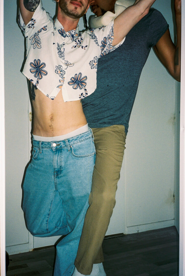 La série documentaire Love me tender explore la douceur entre hommes, celle qui échappe aux cadres, aux rôles et aux clichés virils. Saisies au fil de mes pérégrinations, ces images ne sont jamais posées. Elles captent l’instant où la pudeur se fissure, où un geste banal devient subversif, où l’intime prend le pas sur la représentation.